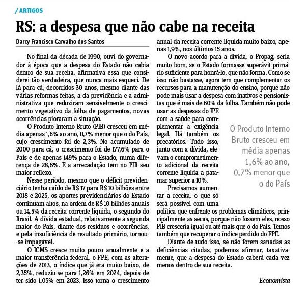 No final da década de 1990, ouvi do governador à época que a despesa do Estado não cabia dentro de sua receita, afirmativa essa que considerei tão verdadeira, que nunca…