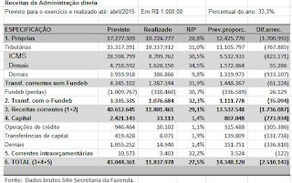 As receitas correntes tiveram um grau de realização de 29,1%, sendo as próprias, 28,8%. As receitas de capital, ingressaram apenas 1,4% e talvez não passe muito mais disso, pelas seguintes razões: